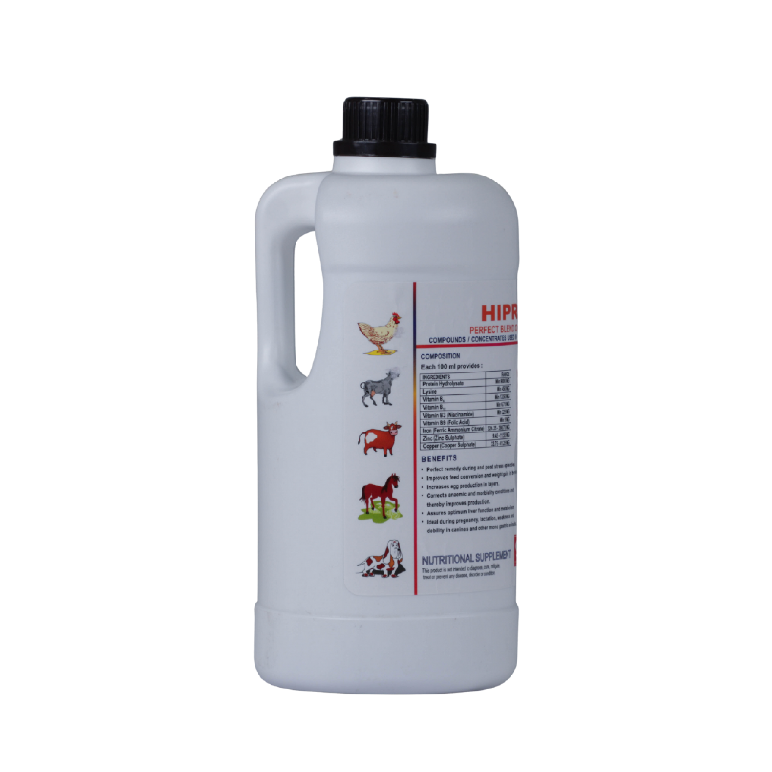 • Protein Hydrolysate (Đạm thủy phân); Lysine; Vitamin B6; Vitamin B12; Niacinamide; Axit folic; Ferric Ammonium citrate; Kẽm sulphate; Đồng sulphate.